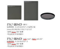 全新PRO    IRND濾鏡推出2種款式可選擇,分別為圓形與方形(矩形)。圓形濾鏡的兩邊鏡面是采用蒸氣堆積鍍膜來(lái)提高其精準度;而方形與矩形濾鏡則是將鍍膜技術(shù)應用于玻璃鏡片之間的兩側夾層中,防止因濾鏡在使用過(guò)程中摩擦而刮傷,延長(cháng)其使用壽命。