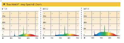 TRUE MATCH®燈管顏色其 獨特的配方是由KinoFlo®所 設計,非常適合于電影和數 碼影像設備的光譜感光曲線(xiàn)