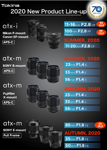 由于新冠肺炎的緣故,原訂今年2月舉辦的日本CP+ (相機暨影像大展)被迫取消,Tokina圖麗也因此改為線(xiàn)上發(fā)布2020年的新鏡頭開(kāi)發(fā)計劃。在鏡頭未來(lái)藍圖的規劃中,除將經(jīng)典的atx-I 11-20mm F2.8CF推出升級版外,也針對Sony與Fujifilm等不同相機制造商的全畫(huà)幅、APS-C規格推出一系列大光圈定焦鏡頭,豐富的產(chǎn)品線(xiàn)讓喜愛(ài)Tokina圖麗的用戶(hù)有更多選擇,讓我們拭目以待!
